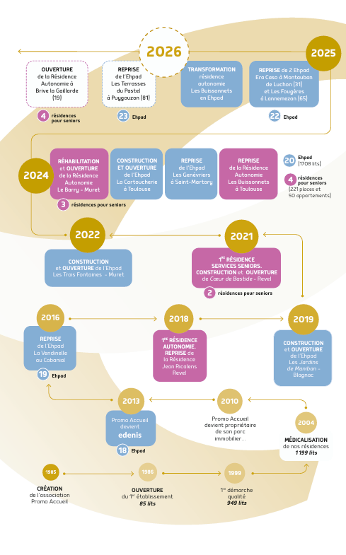 De par son expérience dans l’accompagnement des personnes âgées, Edenis évolue sans cesse pour que, au sein de ses EHPAD, les résidents se sentent « comme à la maison », dans un cadre à la fois hôtelier et médical, renforcé et sécurisé. Edenis reste en veille perpétuelle pour adapter son offre aux besoins des seniors en Occitanie.